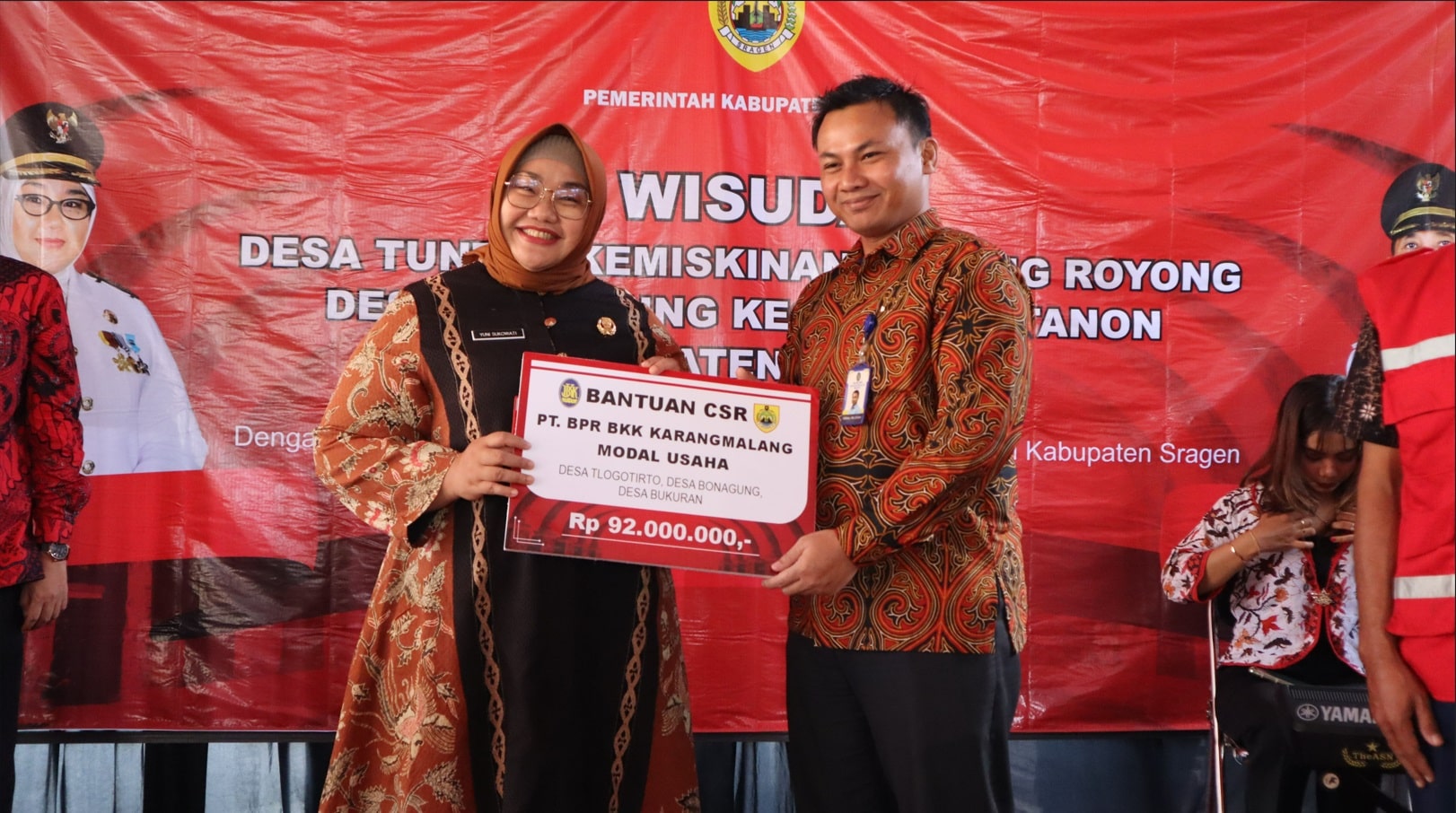 Pada acara “Wisuda Desa Tuntas Kemiskinan Gotong Royong” yang diselengarakan pada 25 Januari 2024, bertempat di Kantor Kepala Desa Bonagung, Kecamatan Tanon PT.BPR BKK Karangmalang turut andil memberikan bantuan berupa corporate social responsibility (CSR) sejumlah Rp 92.000.000.