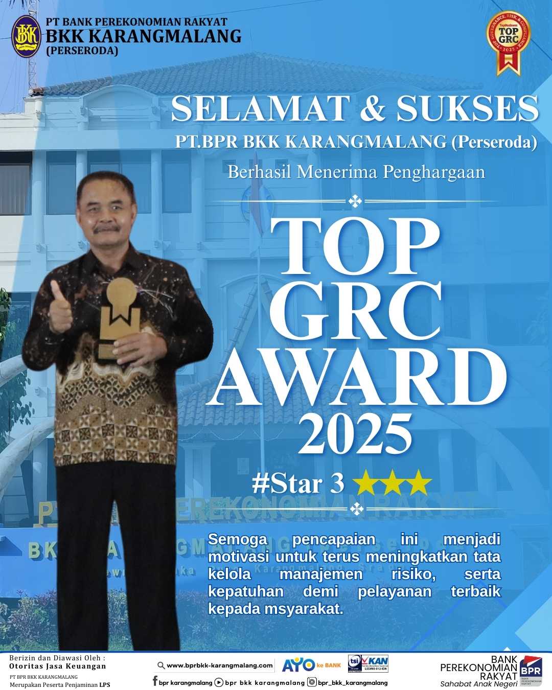 Jakarta, 8 September 2025 – PT BPR BKK Karangmalang (Perseroda) kembali menorehkan prestasi membanggakan dengan meraih penghargaan TOP GRC Awards