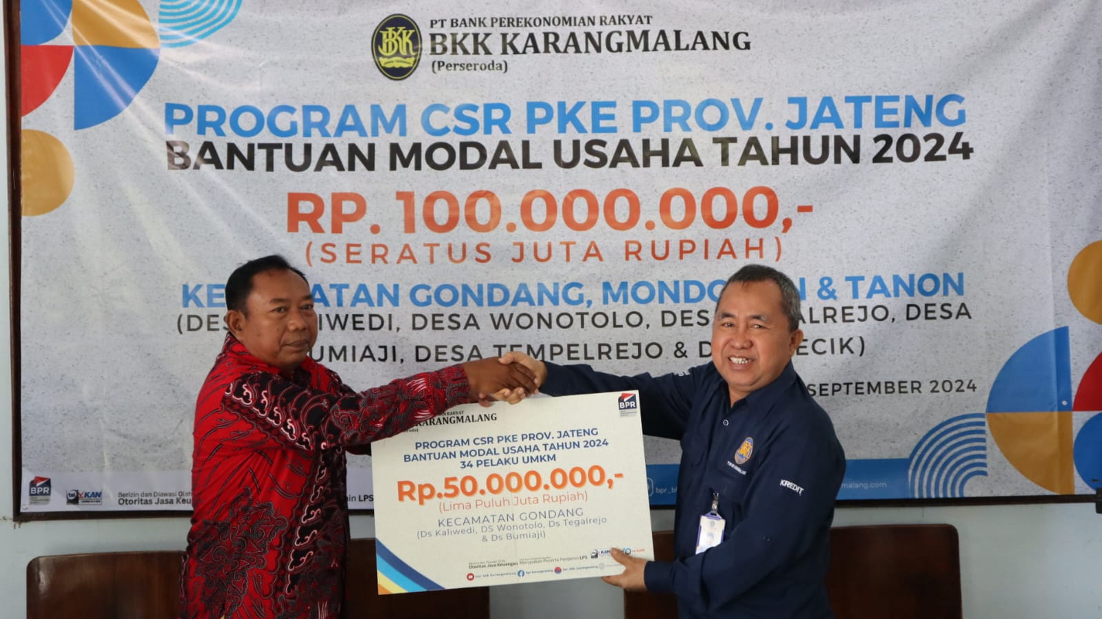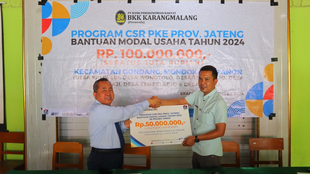 Mondokan - Dalam rangka membantu Provinsi Jawa Tengah dalam Penanganan Kemiskinan Ekstrem, PT. BPR BKK Karangmalang (Perseroda) turut serta menyalurkan